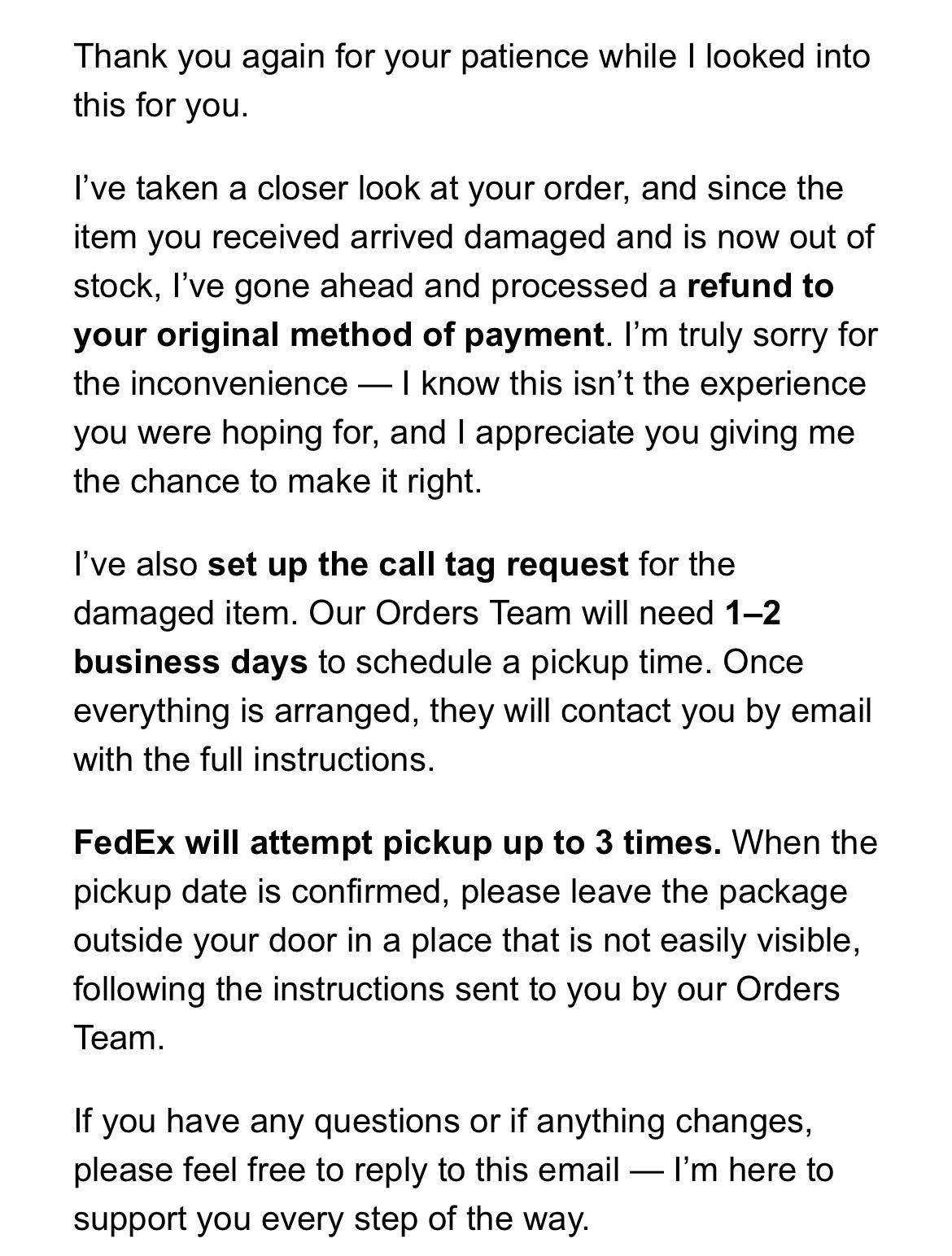 Is this a normal solution? I haven’t received a refund and it makes no sense why they would ask for it back if I said I still wanted it but was just annoyed it came all stained (thankfully stains came out in wash but still you know).
